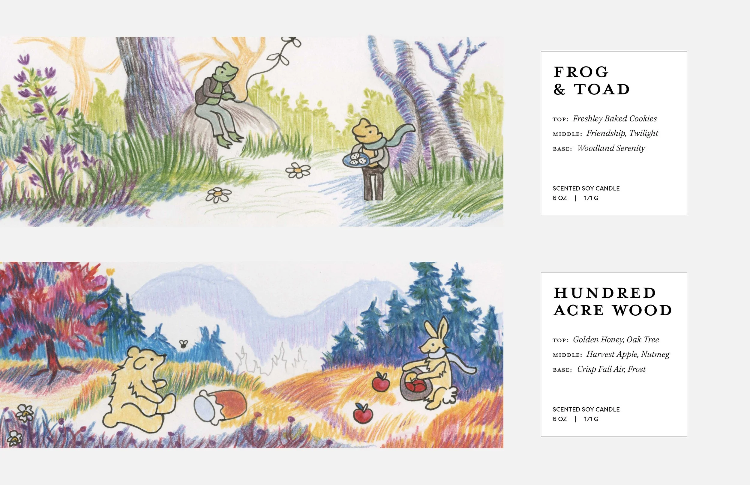 Scentiment is really just a reflection of my obsession with nostalgia, illustration, and the way our senses—especially smell—can take us right back to a moment. These candle concepts are inspired by the stories I was read as a kid, the ones that shaped my imagination and still linger in my mind.
